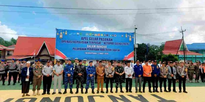 Inforakyat, Tanjungpinang- Wakil Wali Kota Tanjungpinang Raja Ariza bersama Kapolresta Tanjungpinang Kombes Pol Indra Ranu Dikarta, memimpin apel gelar pasukan Operasi Kepolisian Terpusat (Ketupat Seligi) 2026, di Halaman apel Mapolresta Tanjungpinang, Kamis (12/3/2026).
